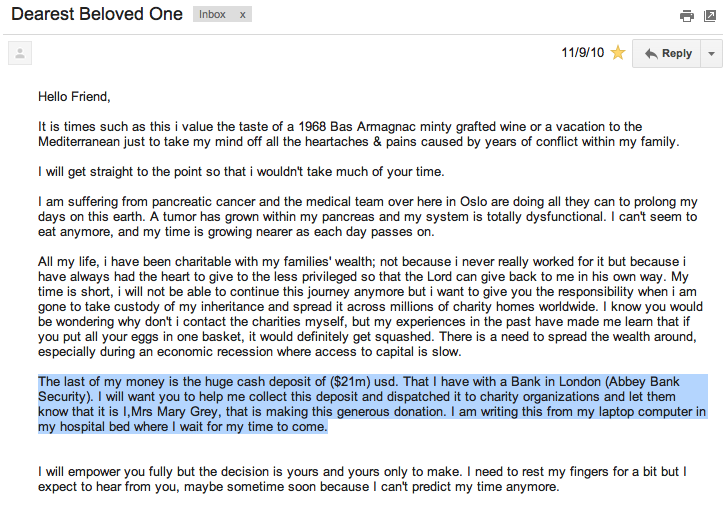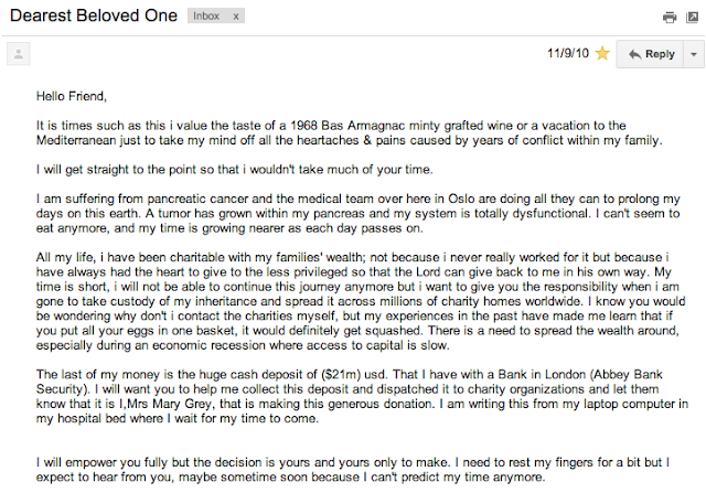 That's a nigerian scam email